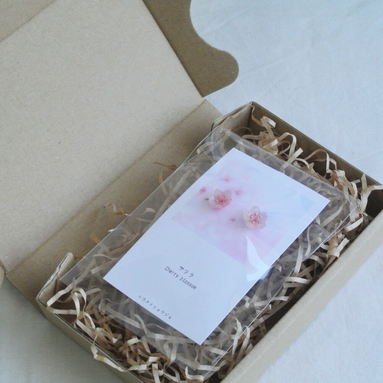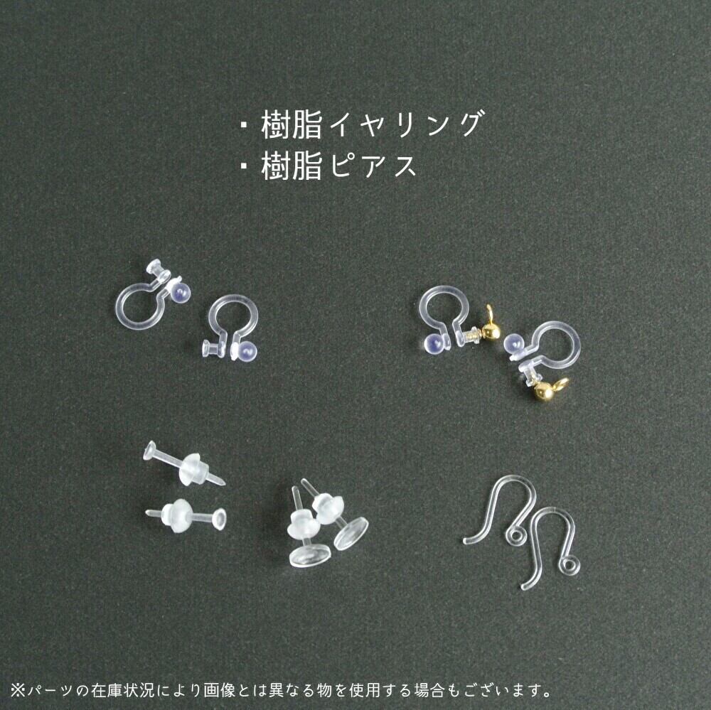 樹脂ピアス、樹脂イヤリング、金属ピアス、金属イヤリングの4種からお好きな金具をお選びください。商品はご注文をいただいてからお作りします。